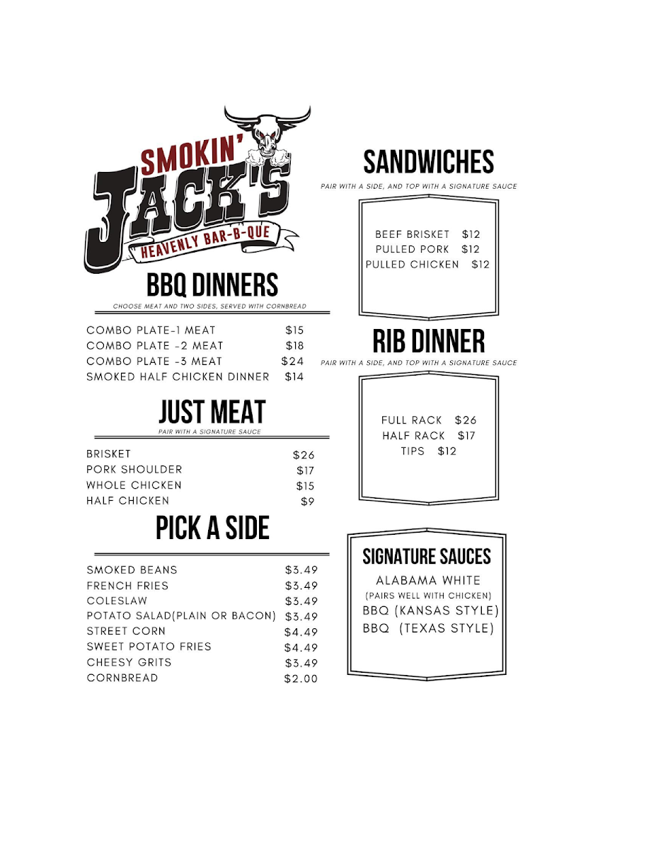 Welcome to Smokin’ Jack's BBQ at the renowned 3rd St. Market Hall in Milwaukee, a must-visit for BBQ enthusiasts. Their menu features an array of delicious options that highlight the art of smoking meats. Indulge in the Whole Brisket to Go, an award-winning choice that comes perfectly packed for convenience. Try the Smokey Bird for a flavorful experience that will leave a lingering taste on your palate, as noted by satisfied customer Syreeta Goodwin.